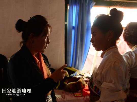 組建戲團(tuán)十多年,如今的瓊達(dá)已經(jīng)44歲了,孫子丹增覺美已經(jīng)兩歲多。8月6日,甲熱村里古老的覺木隆寺舉行雪頓節(jié)曬佛慶典,藏戲團(tuán)的演出自然是慶典必不可少的內(nèi)容。8日劇團(tuán)更要趕赴羅布林卡,參加一年最重要的演出。即使在這樣繁忙的時候,瓊達(dá)仍然承擔(dān)著帶孫子的任務(wù)。瓊達(dá)的兒女都沒有接手藏戲團(tuán)的打算,但是小小年紀(jì)的丹增覺美卻已經(jīng)展現(xiàn)出了對藏戲的興趣,這或許為憂心村里藏戲團(tuán)傳承的瓊達(dá)帶來了一絲安慰。 /新華社記者 宋振平 曾毅 攝影報道