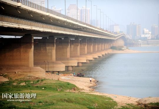 9月12日,水位下降致贛江南昌大橋橋墩全部裸露。