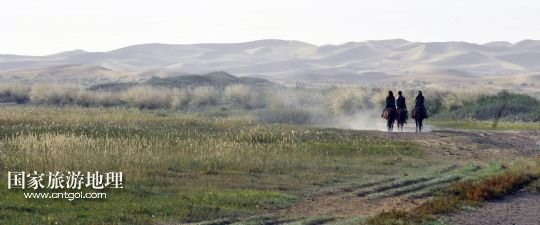 國(guó)家旅游地理 內(nèi)蒙古阿拉善9月29日訊 9月28日,游客在通湖草原景區(qū)騎馬。通湖草原景區(qū)位于內(nèi)蒙古和寧夏交界的騰格里沙漠腹地,景區(qū)匯集了沙漠、草原和湖泊,自然景觀獨(dú)特,吸引了眾多秋游的游客。 /新華社發(fā)(劉玉和 攝)