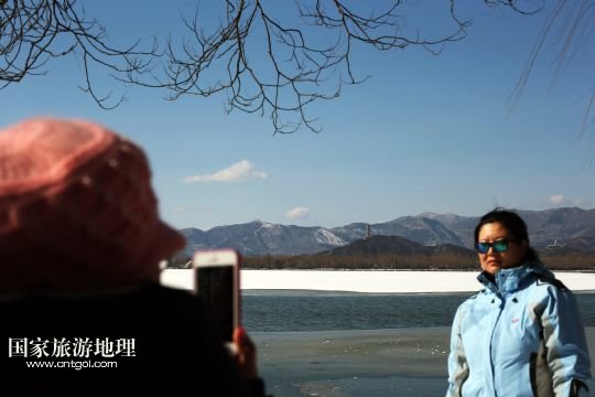 國家旅游地理 北京2月8日訊 2月8日,游客在頤和園昆明湖畔留影。當日,北京首場冬雪過后,京城出現(xiàn)“西山晴雪”美景。“西山晴雪”是燕京八景之一,主要泛指西山雪景。西山是北京西郊連綿山脈的總稱,也是太行山的一支余脈。 /新華社記者 白雪飛 攝
