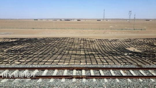 國(guó)家旅游地理 內(nèi)蒙古阿拉善4月21日訊 錯(cuò)落布局在內(nèi)蒙古臨策鐵路(臨河——策克)旁的網(wǎng)格沙障(4月18日攝)。穿越我國(guó)北疆內(nèi)蒙古阿拉善高原大漠的呼和浩特鐵路局臨策鐵路沿線有400多公里“無(wú)人區(qū)”,這里常年干旱少雨、風(fēng)沙肆虐、植被稀少、人跡罕至,30多萬(wàn)平方公里的荒漠、戈壁縱橫交錯(cuò),自然條件極度惡劣。