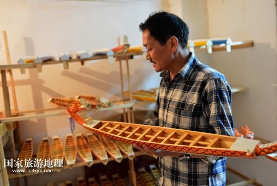國家旅游地理 湖北宜昌5月15人訊 5月15日,手工藝人鄭祥龍在為微型龍舟上龍頭。端午節(jié)臨近,屈原故里湖北省秭歸縣歸州鎮(zhèn)手工藝人鄭祥龍精心制作一條條微型木制龍舟,準備在端午文化節(jié)期間向中外游客進行展示。