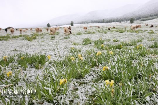 國家旅游地理 新疆哈密5月31日訊 5月31日,新疆哈密一位牧民在雪中放牧。當日,受冷空氣影響,新疆哈密北部沿天山一帶出現了降雪降溫天氣,給五月的天山披上銀裝。 /新華社發(fā)(普拉提 攝)